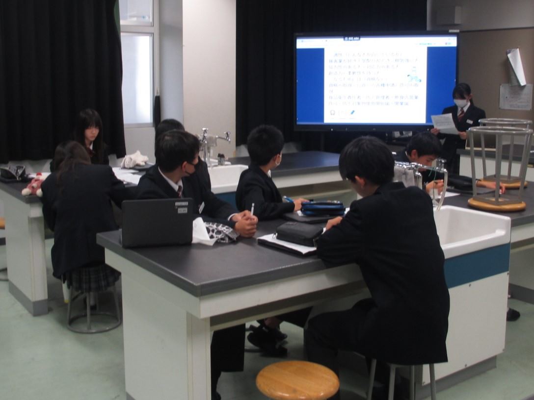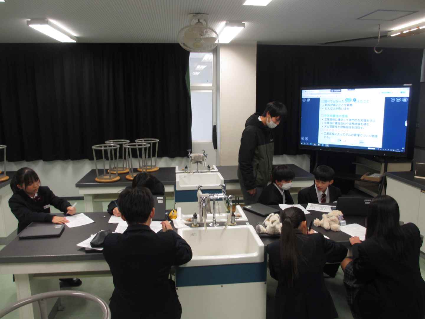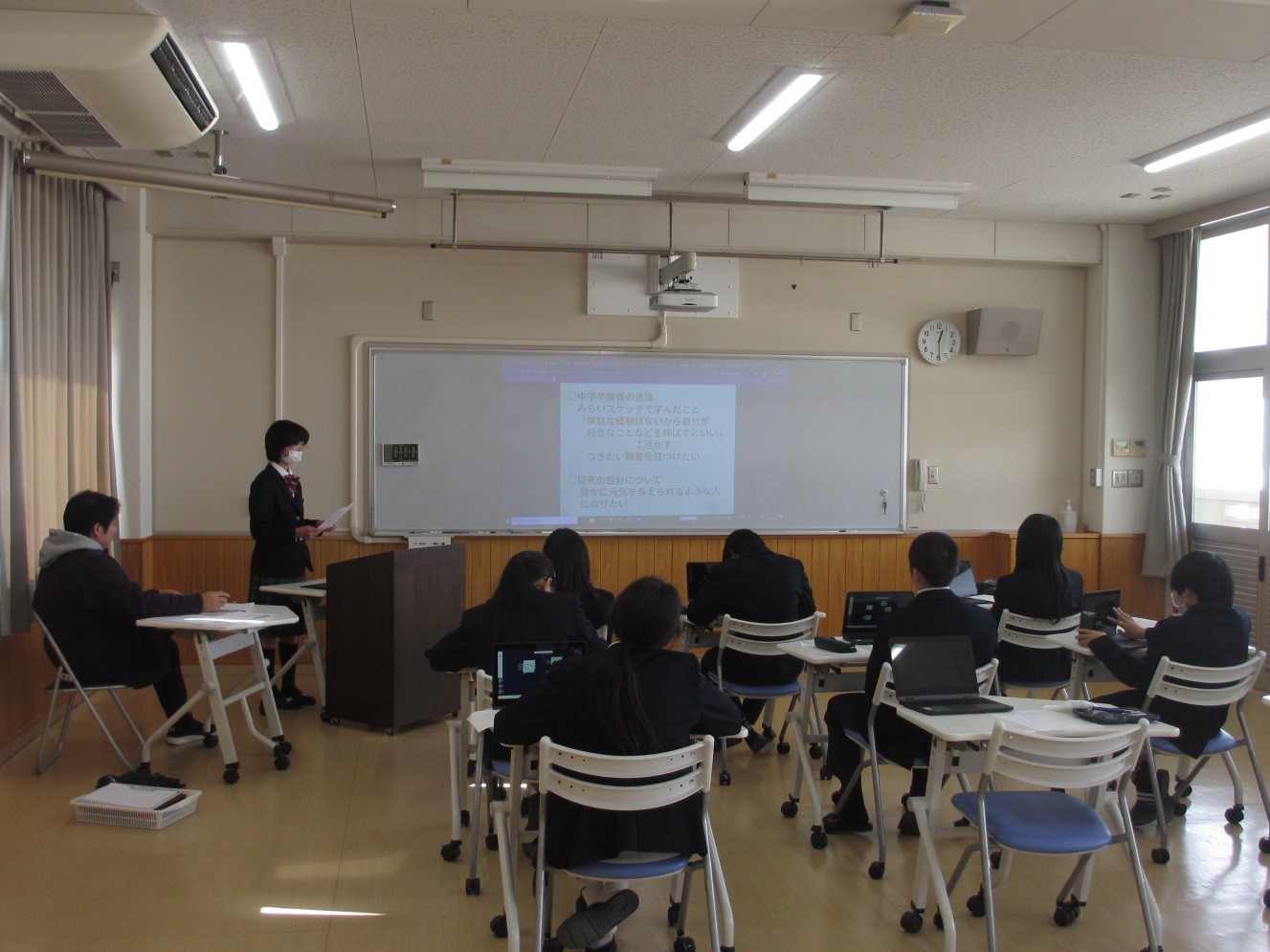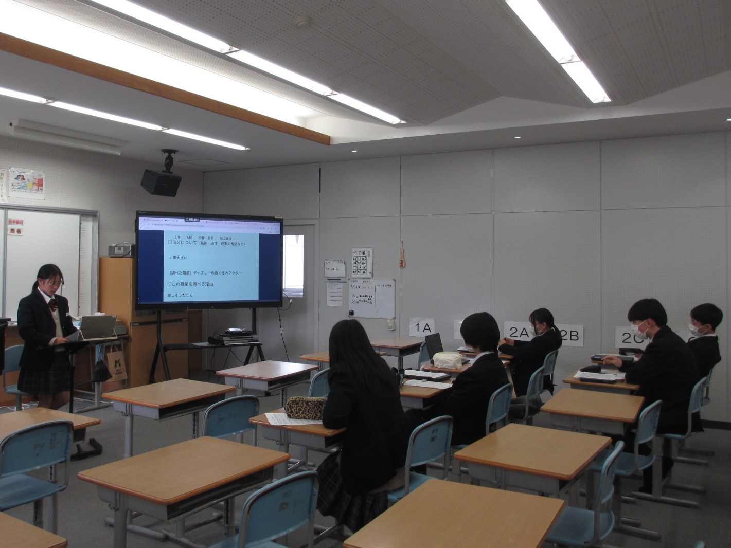 1年生が、今まで進めてきたキャリア学習についての発表会です。グループに分かれてそれぞれの会場で発表をしました。