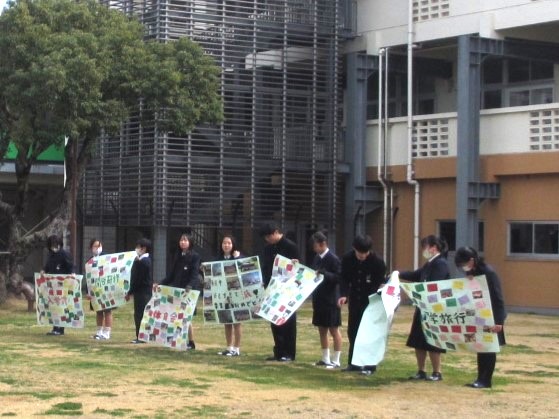 その後、職員室前の廊下に掲示されました。卒業式当日は体育館へ掲示する予定です。