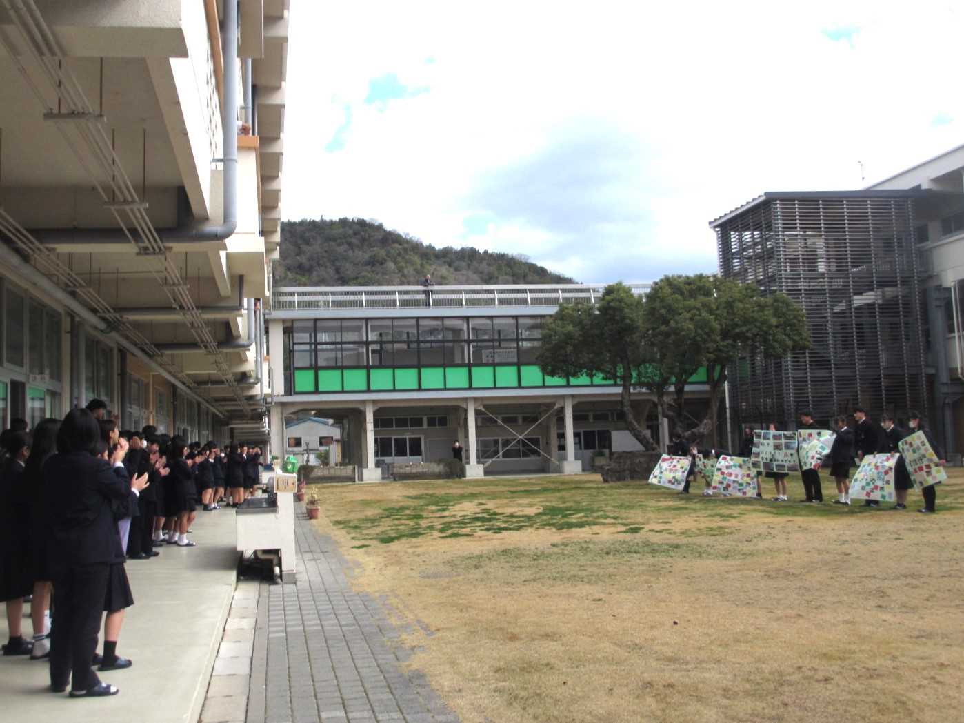 思い出写真とともに、1・2年生からのお祝いメッセージが発表されました。