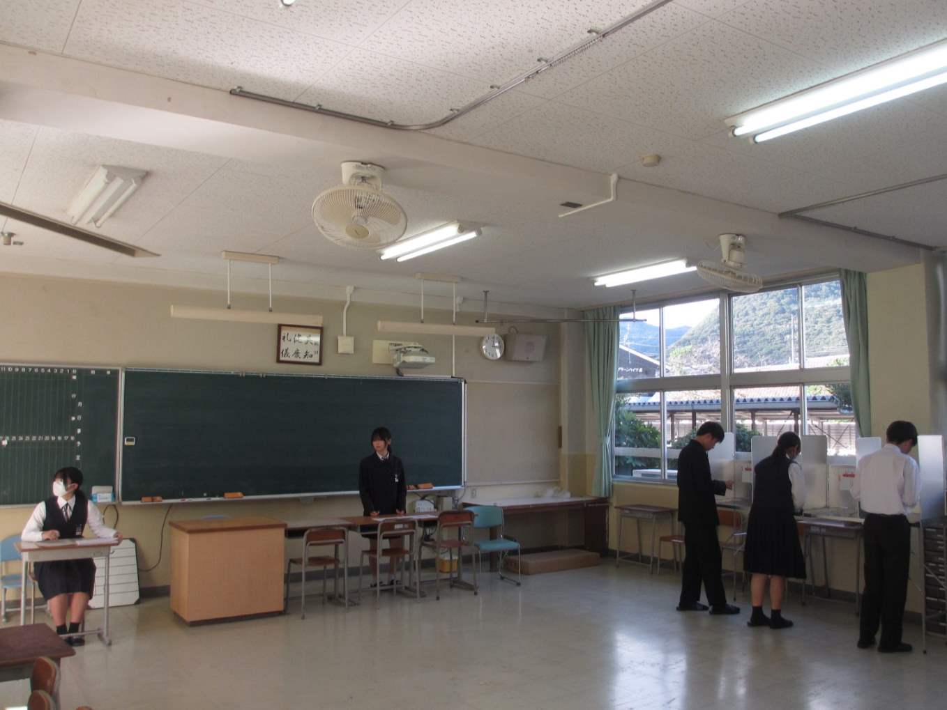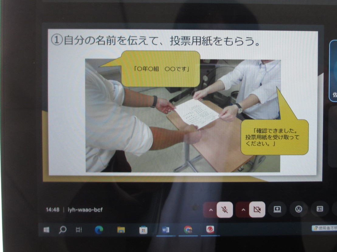 オンラインで本部と教室をつないでの立会演説会も定着してきました。運営はすべて選挙管理委員会で行います。投票の説明もオンラインで分かりやすく説明します。