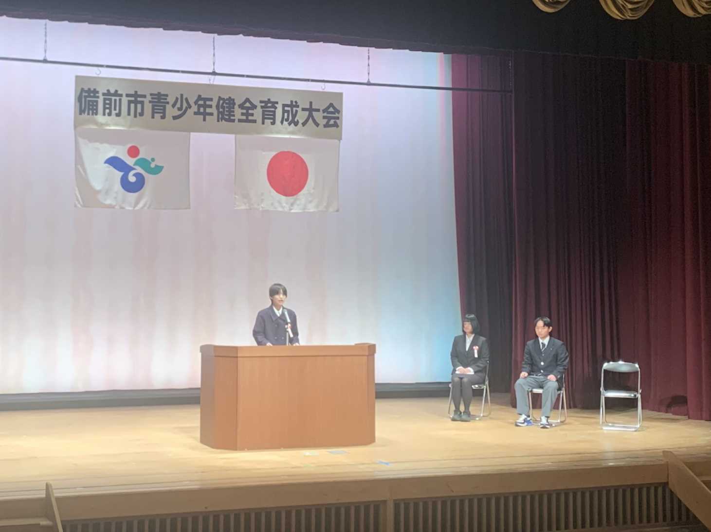 中学生弁論発表もあり、備前中生徒の堂々とした発表がありました。