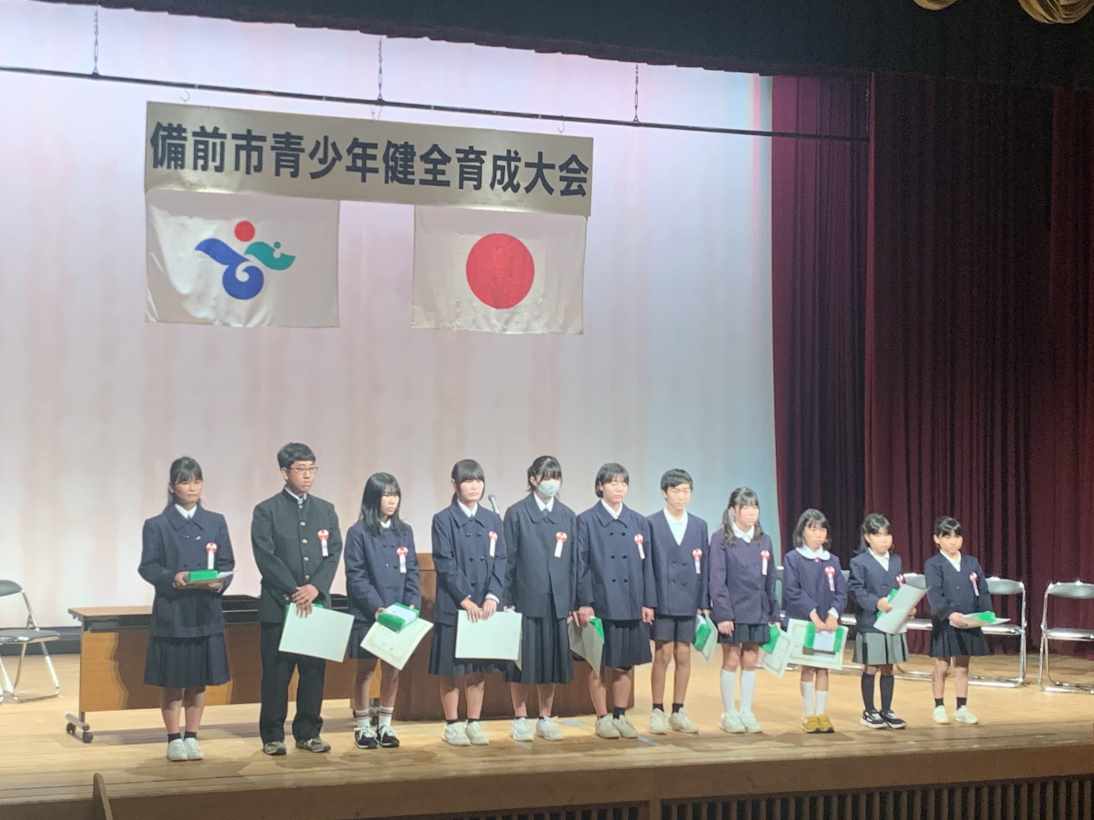 受賞者の表彰では備前中生徒も表彰されました。