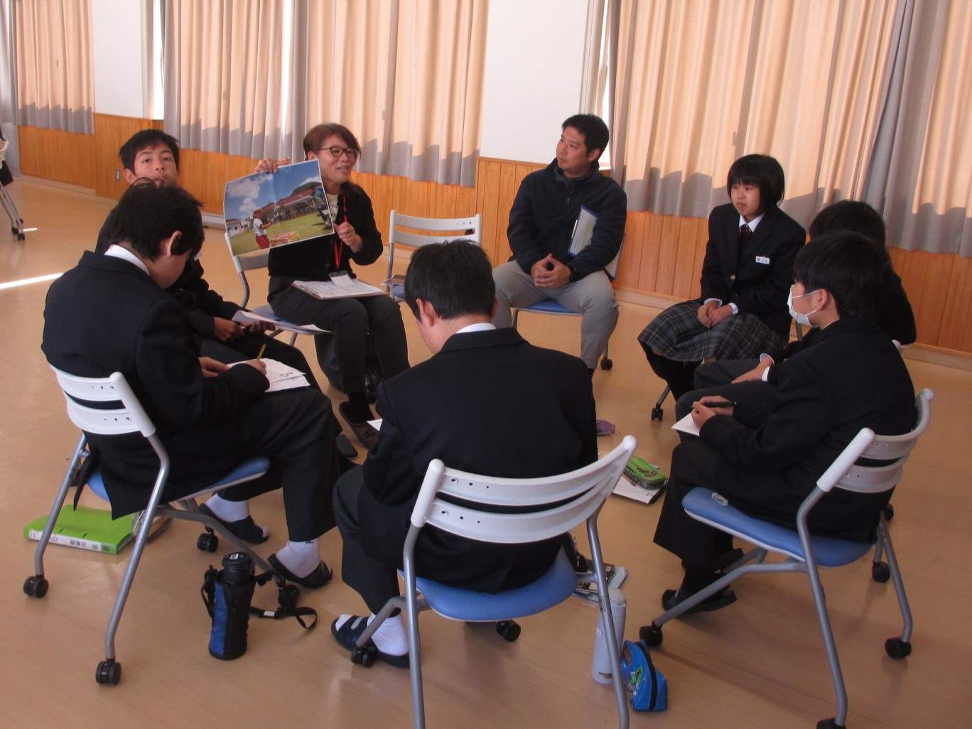 様々な職種の方が、ボランティアとして集まってくださいました。中学生のころ興味があったこと、今の仕事のやりがい、難しさ、お金の稼ぎ方等々、大人としての生き様を優しく厚く丁寧にお話していただきました。子供たちも刺激を受けえたのではないでしょうか。ボランティアとして参加してくださった皆さん、その「大人」の皆さんを集めてくださったPTA運営メンバーの皆さん、本当にありがとうございました。