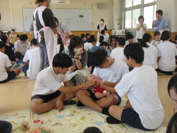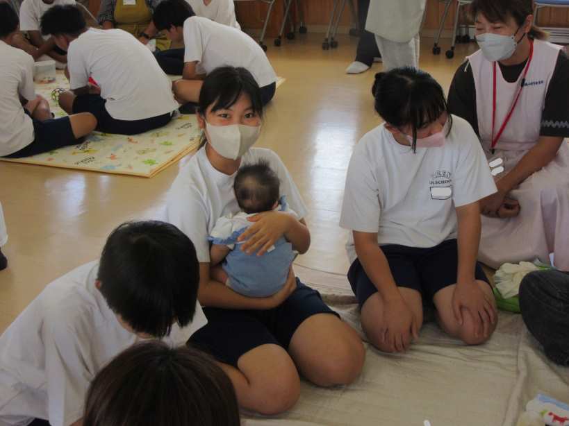 9月12・19日、3年生の家庭科の授業の一環で、赤ちゃんとのふれあい体験活動が実施されました。