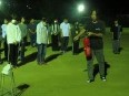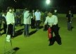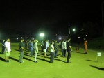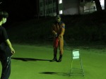校庭では、災害時に心がけることをお話しいただき、また消火活動の模擬練習も実施しました。