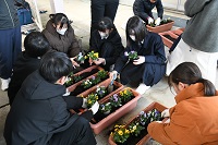 12月22日(月)、生徒会執行部の2年生が主催しているプロジェクトXの活動を行いました。今回は毎年行っている花の苗植えをしました。プランターに土を入れ、ビオラやパンジーの苗を1つずつ丁寧に並べていきました。植え付け後にはプランターを並べて、水やりまでしました。これからの花の成長がとても楽しみになりました。