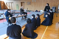 日本の伝統楽器、三石の伝統文化に親しむために、林田ご夫妻、地域コーディネーターの久山さん、加藤さん、を講師としてお招きし、尺八、箏の体験をさせて頂きました。音を出すこと自体がとても難しい尺八に苦戦しつつも、管の中を息がサァーっと通る音が武道場に響きました。箏の体験では「ふるさと」や「カントリーロード」などの課題曲に挑戦し、「指が痛いけど楽しかった。楽譜が難しい。」など短い時間ではありましたが楽しみながら演奏することができました。 |