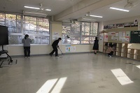 普通教室では全ての机と椅子を廊下に出し、普段はできない細かいところまで清掃をしました。他の特別教室では、日頃清掃がゆきとどかないところが多くあり、みちがえるようにきれいになりました。50分という短い時間の中で、生徒はとてもよく集中して取り組むことができました。気持ちよく2学期の終わりが迎えられそうです。 |