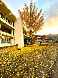 | 昨日と同じ、葉っぱの風景です。昨日と一転、今日は朝から落葉のそうじに6年生が出てきてくれました。その姿を見て、今度は、2年生の子たちが違う場所で落ち葉集めを始めていました。そして2時間目が終わった業間休みには、1年生の子たちまで落葉集めをしてくれていました。6年生の姿を見て下学年の子たちがまねをする「つながり」が生まれていました。 | |