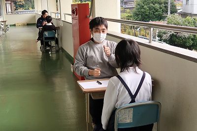 | 今週は教育相談週間でした。一人ひとり、ゆっくり話を聞ける、子どもたちは他の子に遠慮することなく話せる、貴重な時間です。思いがけない話が聞けたり、先生に驚くような質問が出てきたり、あっという間に持ち時間がなくなってしまいます。時間が足りなかった子は、後日、続きの話をするようにしています。 | |