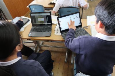 | 4年生の算数は、いよいよ1年間の学習の「総まとめ」の時期に入りました。鉛筆と定規を走らせ、図形や計算問題に集中して取り組む姿が見られました。驚いたのはその直後。一斉にタブレット端末を手に取り、教科書のQRコードをスキャン。先ほど解いた問題の答え合わせをしたり、自分の進度に合わせて補充問題に挑戦したりと、個別学習が始まりました。ノートに書く、定規で引く、そしてタブレットで深める。これらを1時間の授業の中で「当たり前」に使い分けている姿に、4年生としての確かな成長を感じました。 | ||||