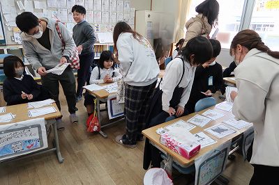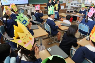 | 4月の入学を控えたこども園の子たちが小学校へ見学にやってきました。1年生教室では、「先輩」になった現1年生がお出迎え。タブレットPCを使って一緒にお絵描きを楽しんだり、心を込めて作った手作りの王冠をプレゼントしたり。体育館では、4月から最高学年となる5年生がレクリエーションを企画。優しく声をかけながら一緒に遊び、新1年生をおもてなししました。この交流を通して、新1年生の子たちが「小学校って楽しそうだな」「早く入学したいな」と、ワクワクした気持ちになってくれたら嬉しいです。 | ||||