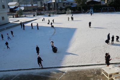 | 全国的な大雪から一夜明けた今朝、本校の校庭には一面、美しい白銀の世界が広がっていました。豪雪地帯では大変な苦労を伴う雪ですが、子どもたちにとっては空からの大きなプレゼントです。大きな雪玉を大切そうに抱えて歩く子、真っ白な新雪の中に飛び出して走り回る子など、朝から「よしながっこ」のテンションは最高潮!冷たい空気も吹き飛ばす子どもたちの明るい笑顔に包まれ、活気あふれる一週間のスタートとなりました。 | ||||