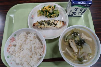 | 6年生の家庭科で「栄養のバランスを考えて給食の献立をたてよう」という授業をしました。6年生が考えた献立の中から、調理場の栄養士さん、調理員さんが相談し、栄養バランスや彩りのよさ、工夫したところなどをもとに、ぜひ給食で出したいと思った献立2つと、料理3つを選びました。今日の献立は、菜の花などの旬の食材を使い、春の訪れを感じることができるような献立になっています。 | ||||