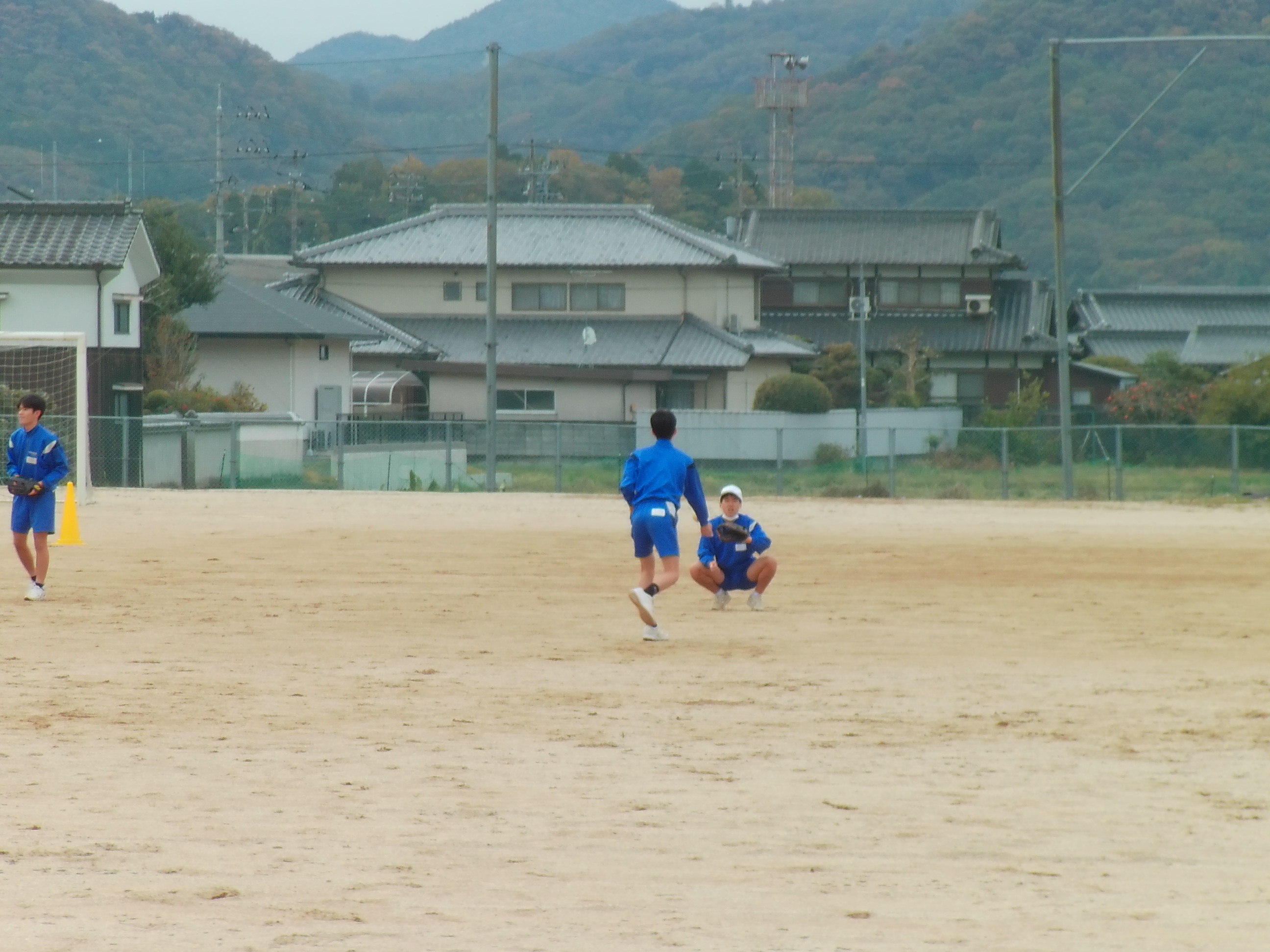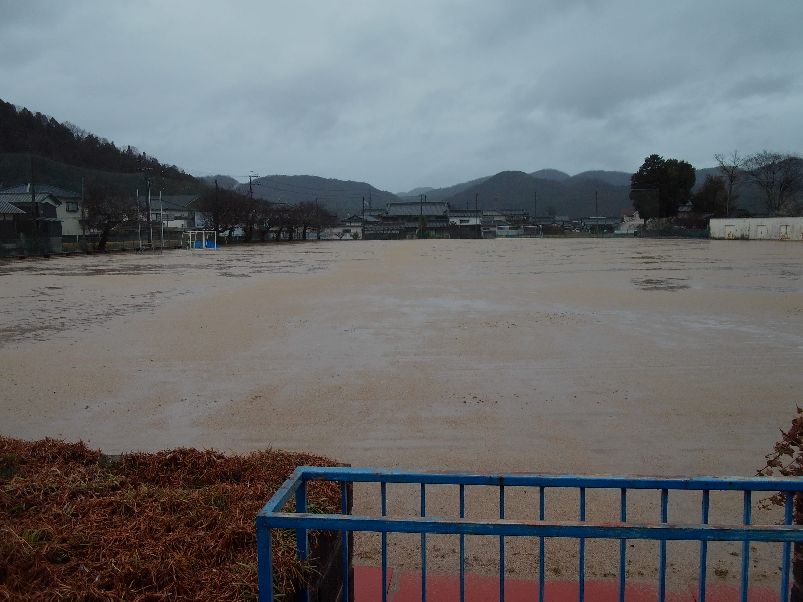 途中から雨が降り出したので、体育館に移動した様子です。
