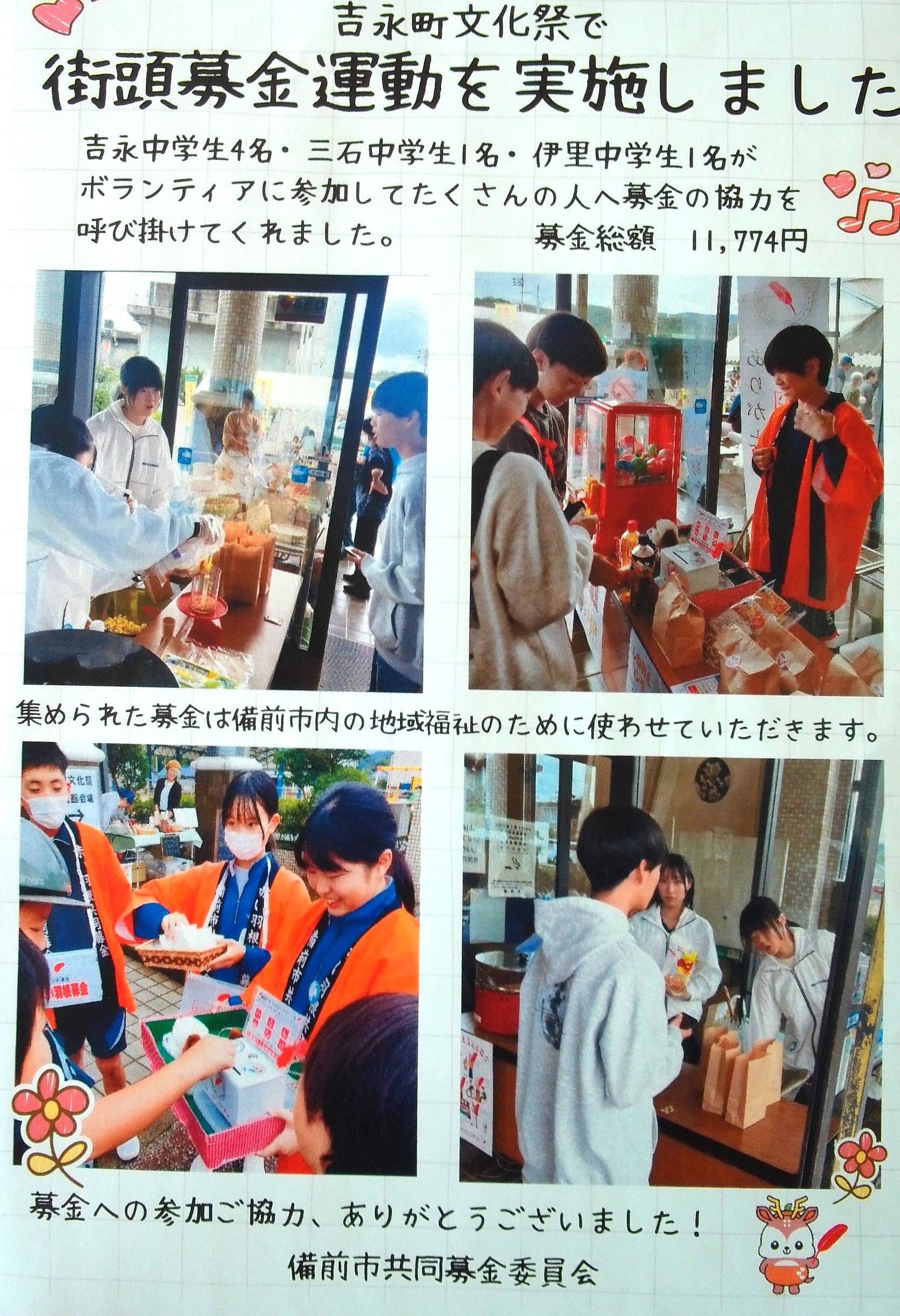 「自分からよしなが」の「が」学校・地域に貢献できる活動の実践ですね。協力してくれた皆さん、