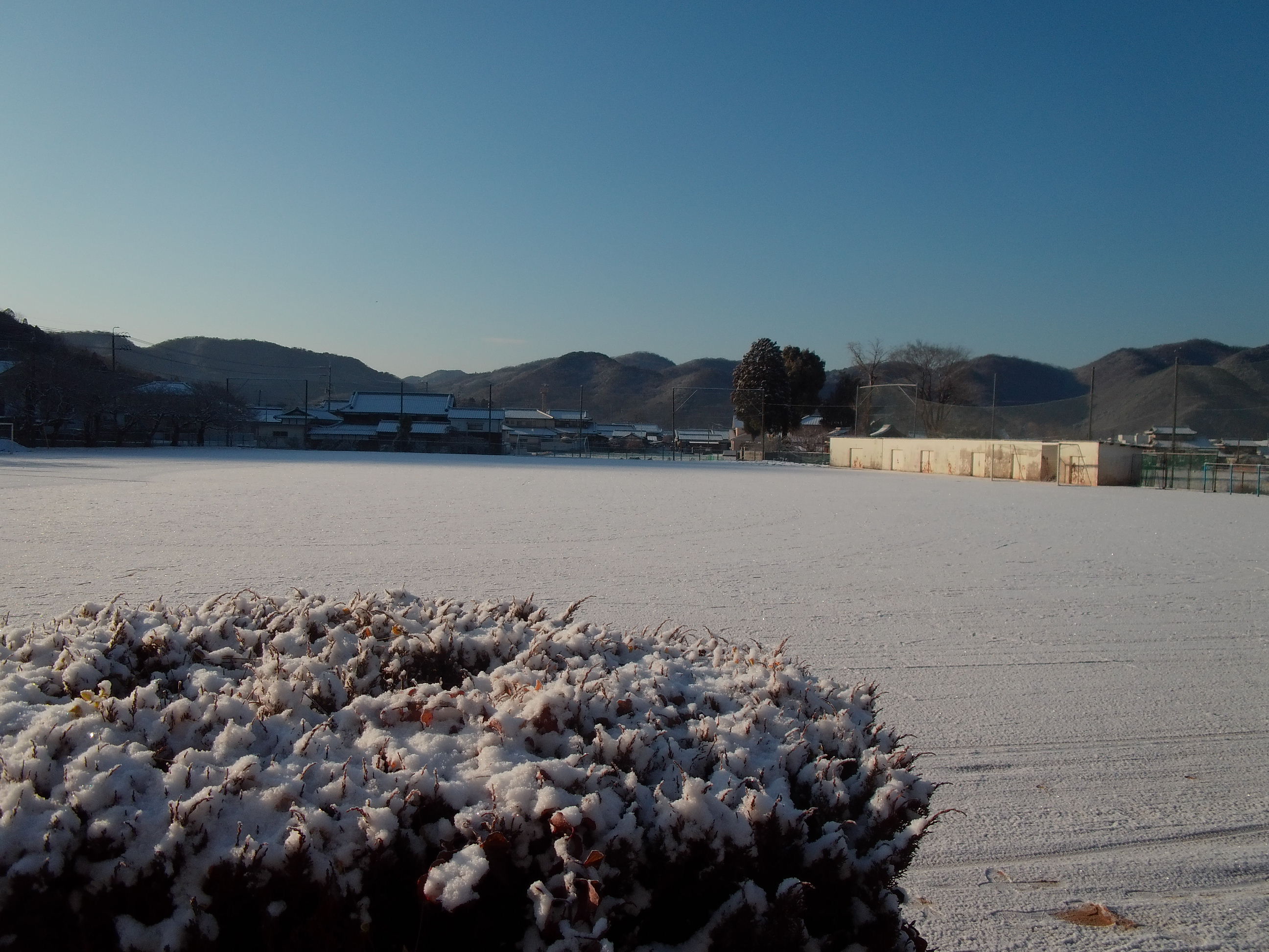 そんな感じだったので、今朝は一面雪化粧でした。通勤途上の道も凍結してい