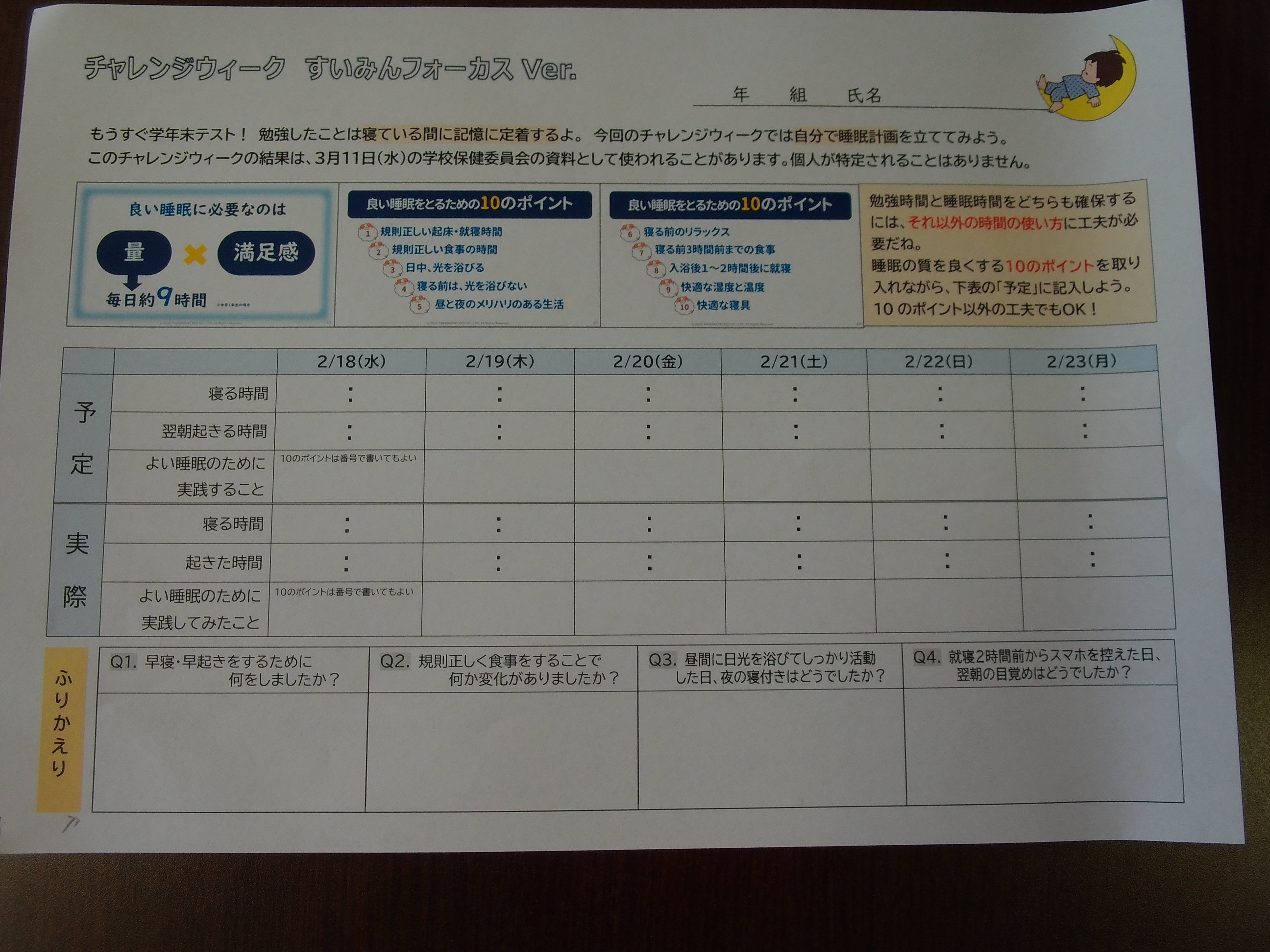 るので、しっかり睡眠時間をとることが大切ですよ。振り返りの項目は、保健委