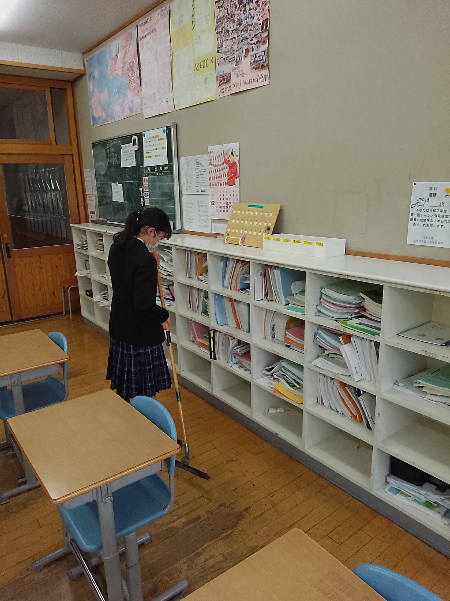 明日の参観日に向けて、清掃ボランティアの生徒たちが放課後に掃除を行いました。