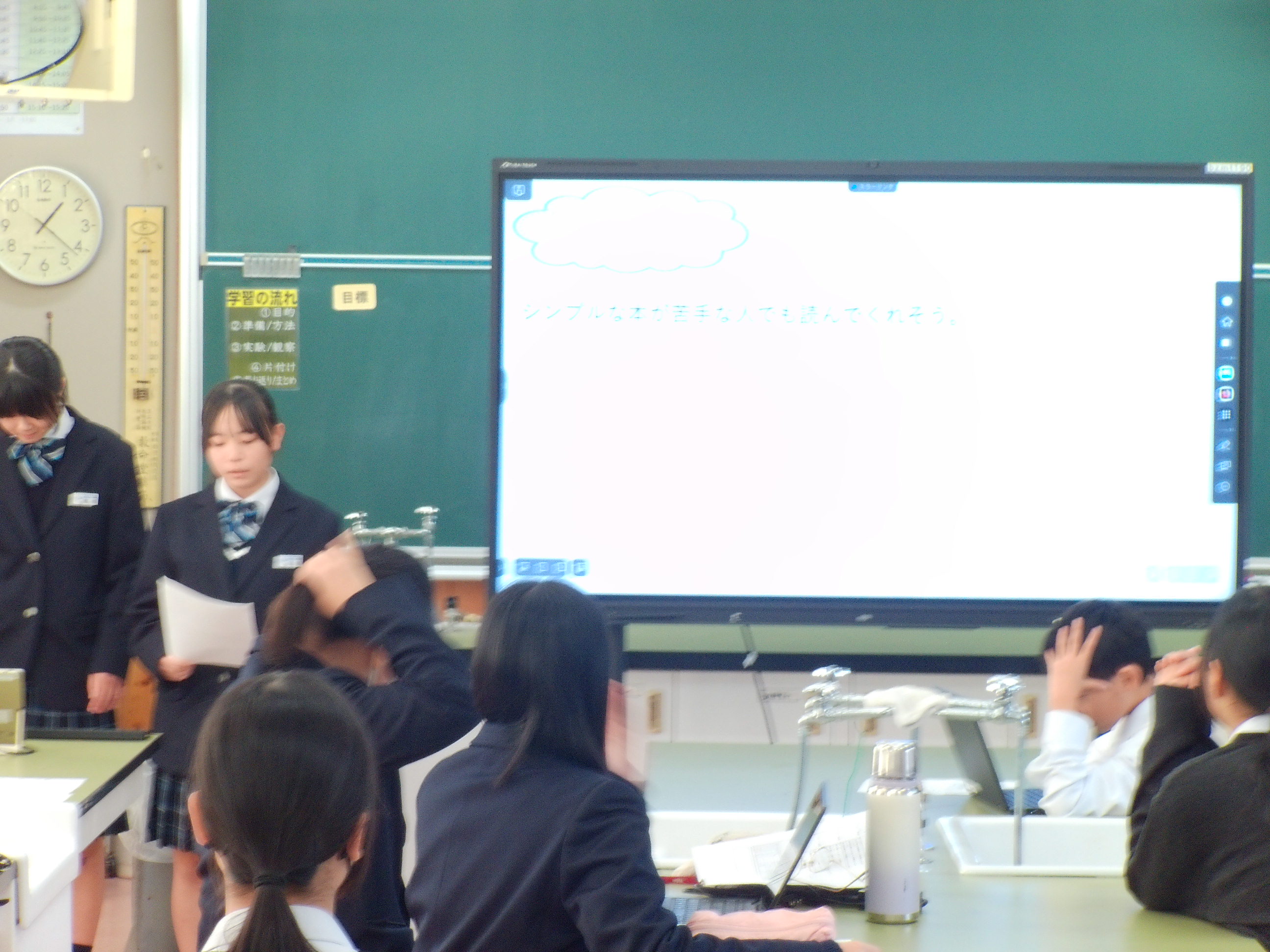 でした。特に代表になった人の発表は、発想もユニークでとても興味深い内容でした。