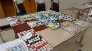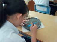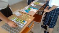1年生の国語科では、ペットボトルのキャップを再利用した「キャップアート」