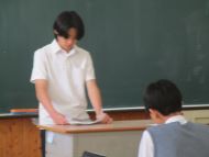 時間をかけて考えた弁論文を、クラスで一人一人発表しました。緊張して