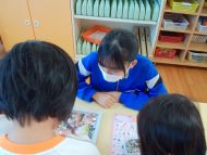 空いた時間にひらがなを練習したり、漢字を勉強したりしています。わたしも英語でコミュニケ