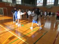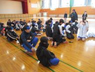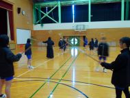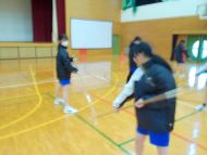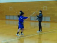 なぎなたの授業は今日が2回目です。前回インフルエンザで実施できなかった3Bと