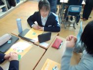 お互いに練習していました。相手の回答について「Really?」「Oh it's Nice!」などの反応も