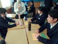 として、3年生では標記の養成講座を開催しました。生徒たちは真剣に話を聞いたりグ