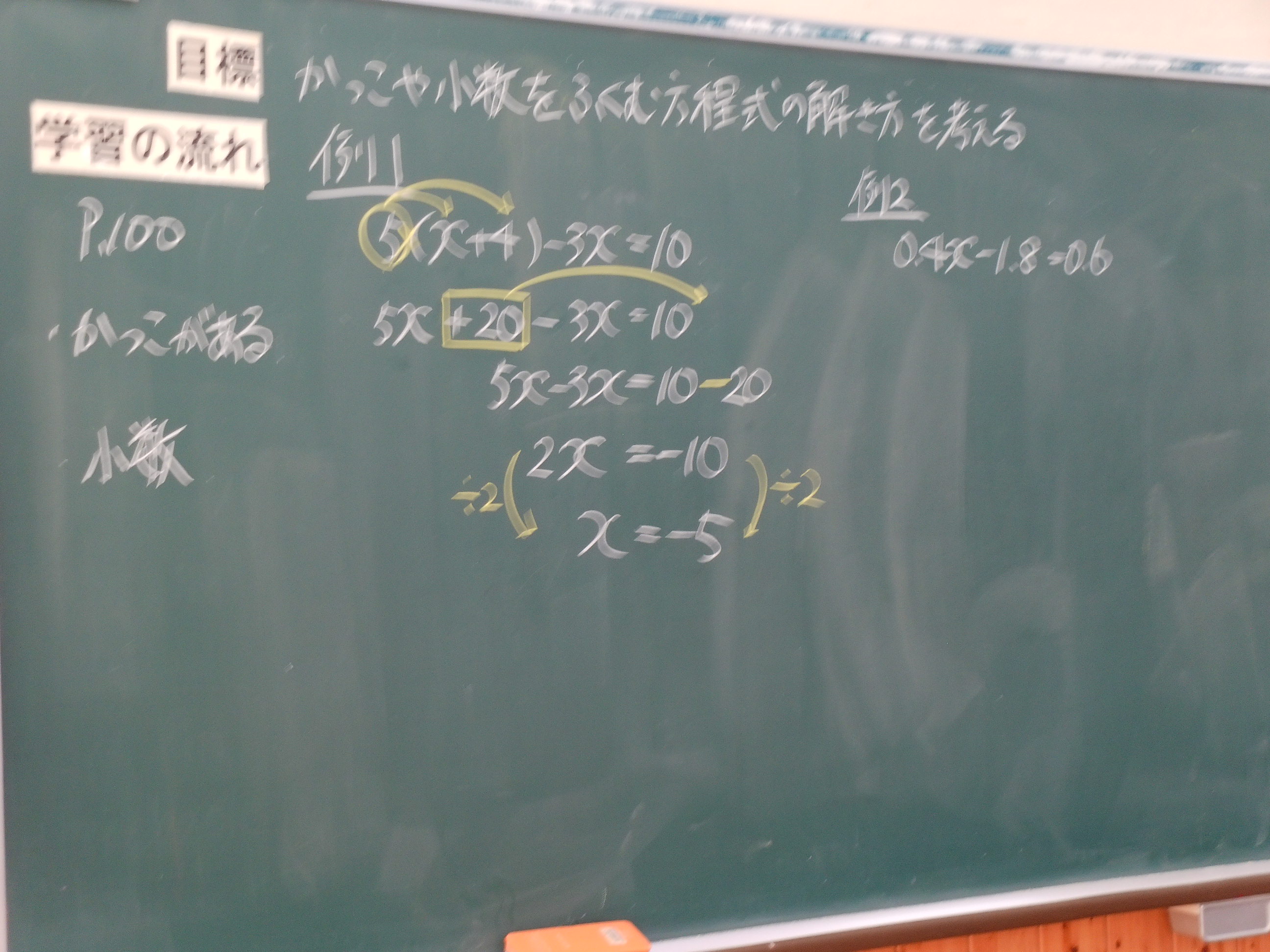 1年生は、方程式の授業を行っていました。かっこや少数を含む方程式を、どう