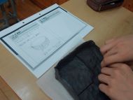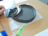 に設計図をつくり、それに従って粘土を切ったり、曲げたり、線をつけたりしながら思い思いの形