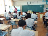「大饗利秀さん、乗松美歩さん」のお二人を迎え、授業を行っていただきました。生徒たちは事前