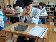3年生は美術の授業で「備前焼」の制作を行いました。これは、岡山県文化連盟が主催している