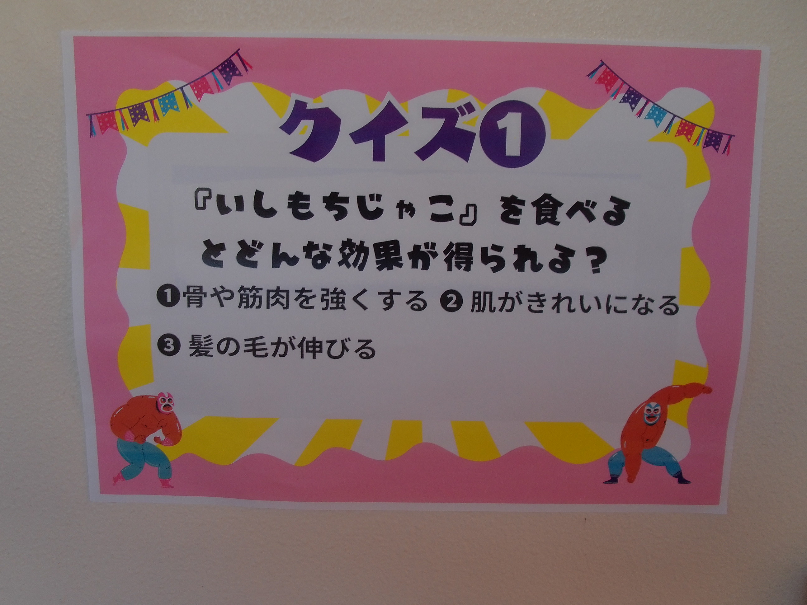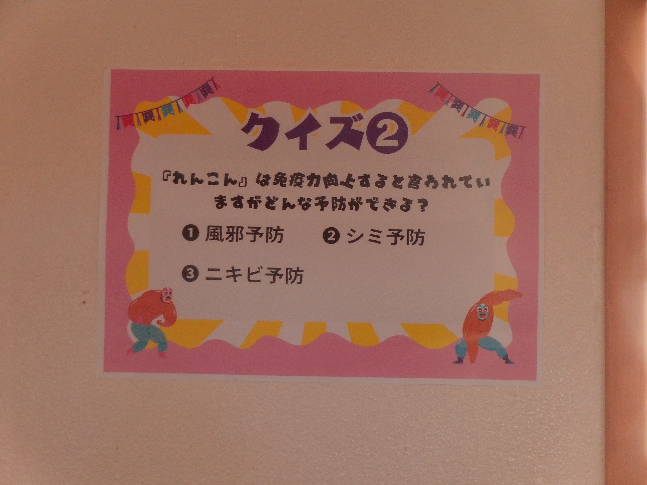 「食に関するクイズ」 が掲示されています。給食は本当に栄養バランスがとれ、毎日日替