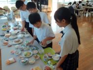 栄養教諭の安藤先生と栄養士の兼中先生の指導の下、子どもたちは積極的に取り組んで