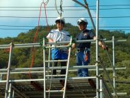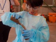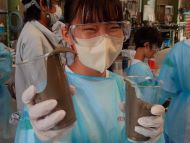 土を軟らかくしたり、固めたりする体験を行ったり、地元の企業が世界を股にかけ