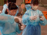 考えました。最初に説明があり、2グループに分かれて見学と体験を行いました。