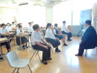 3年生は、明誠学院の小林副校長先生と、笠見参与さんを講師に、面接についての出前授業